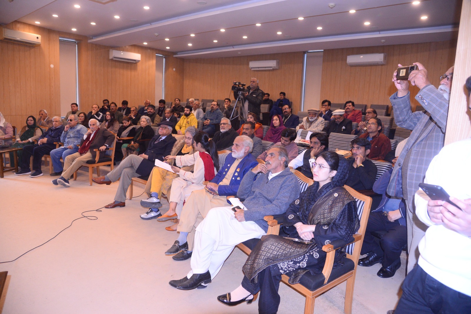 Prominent leaders including Afrasiab Khattak, Mushahid Hussain Sayed, Aizaz Syed, and Harris Khalique shared their views, while Ms. Maria Iqbal Tarana moderated the session. The event was attended by a large audience of students, academics, and political workers.
